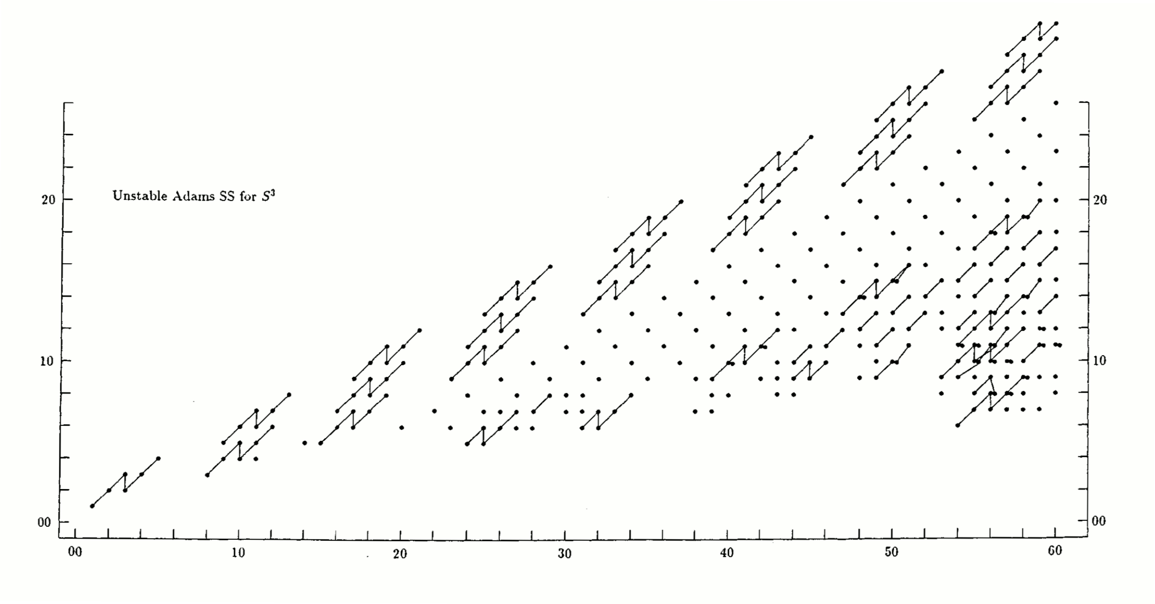Also, here are two animations of the stabilization of the unstable Adams spectral sequence for the sphere, at the prime 2 and at the prime 3, due to Barnes, Poduska, and Shick.