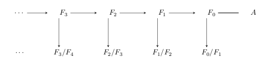 But, it is rarely the case that objects are given to us in one-step constructions! It is commonly the case that we have a whole filtration: a sequence of subobjects , each one stacked in the next, like so: